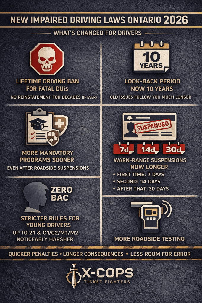 The new impaired driving laws Ontario 2026 bring longer licence suspensions, stricter repeat-offender rules, tougher consequences for young drivers, and more penalties that apply immediately, not months later in court.